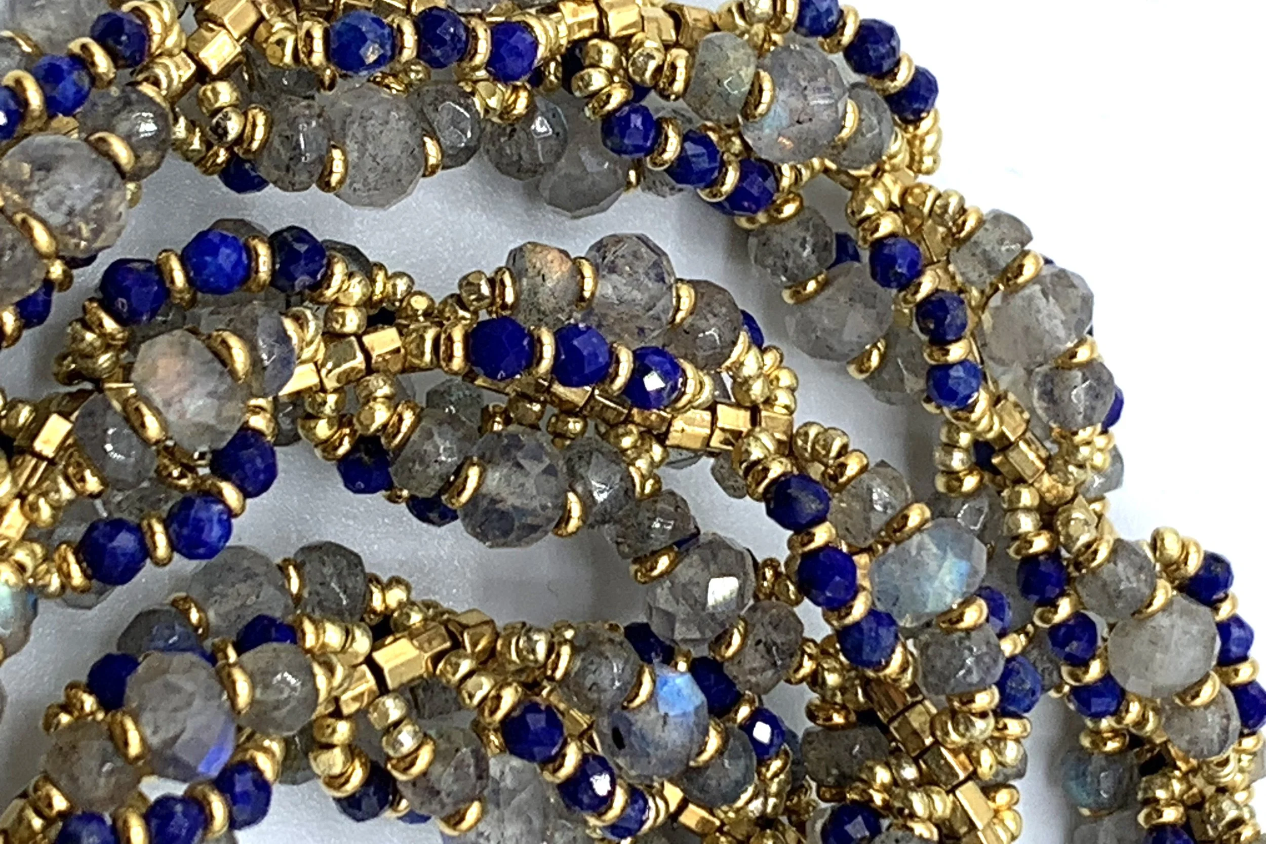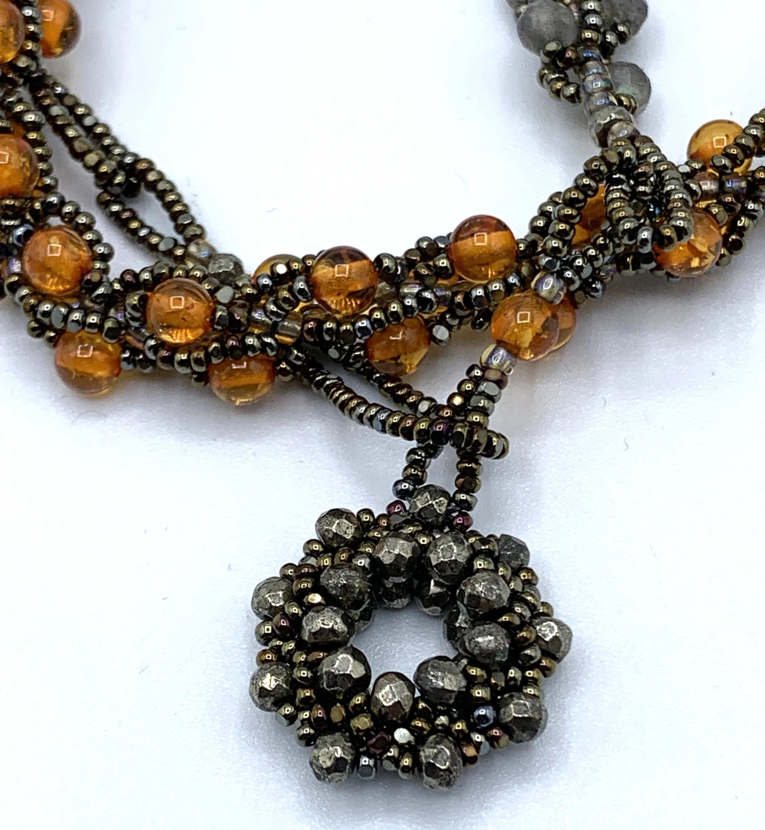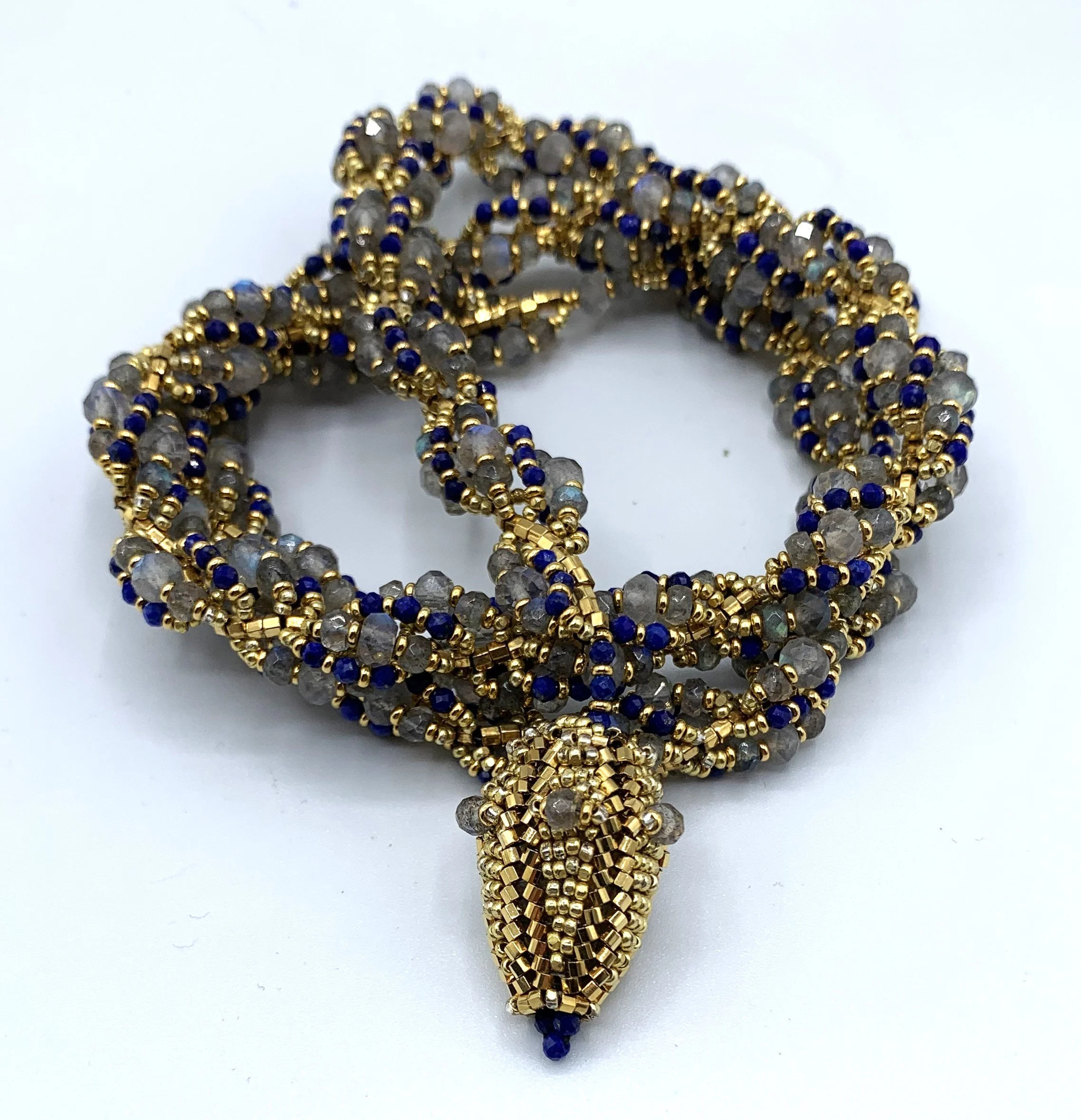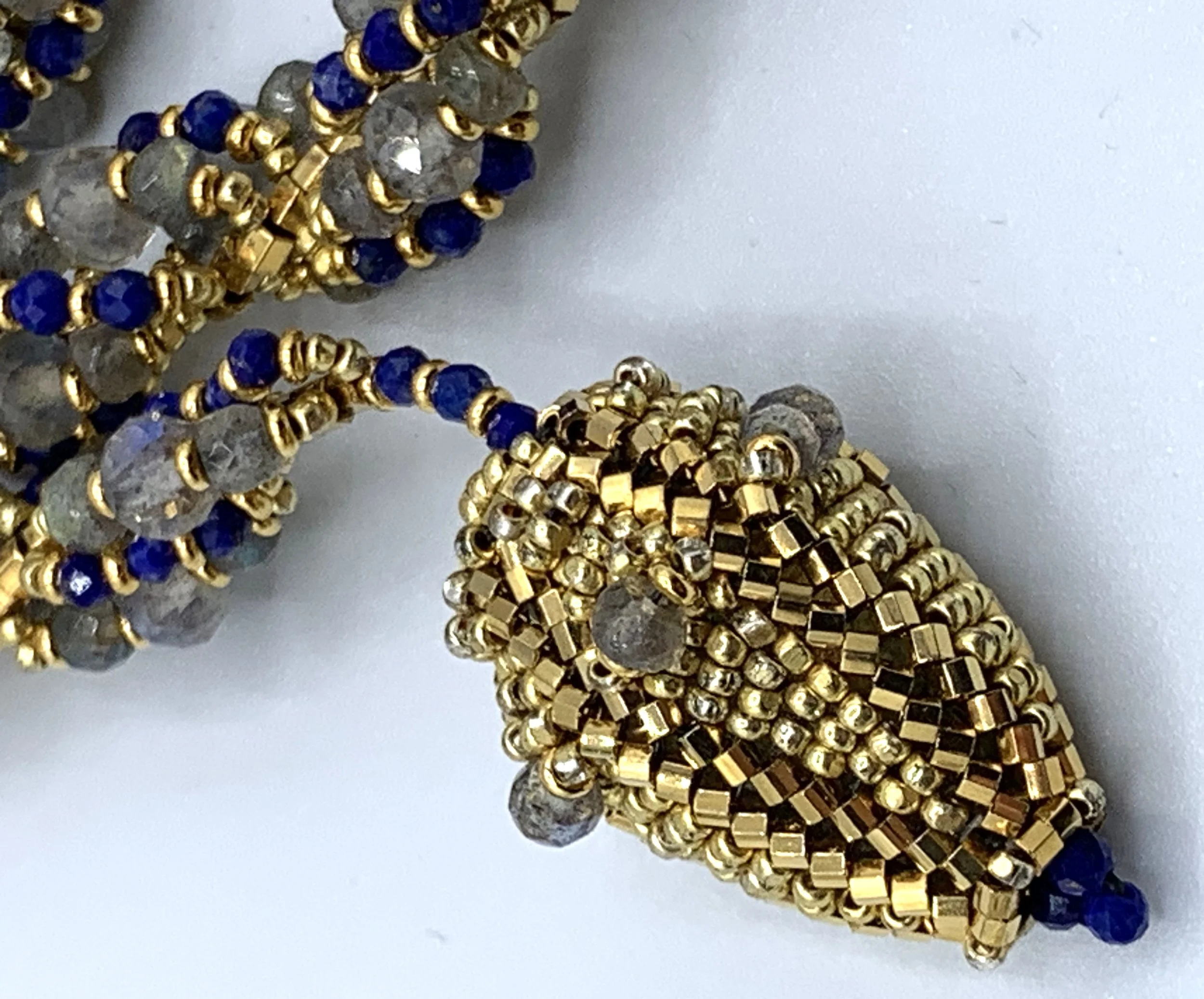 spiral lariats Glass beads and gemstones make up these spiral stitched lariats, each with its one of a kind clasp.